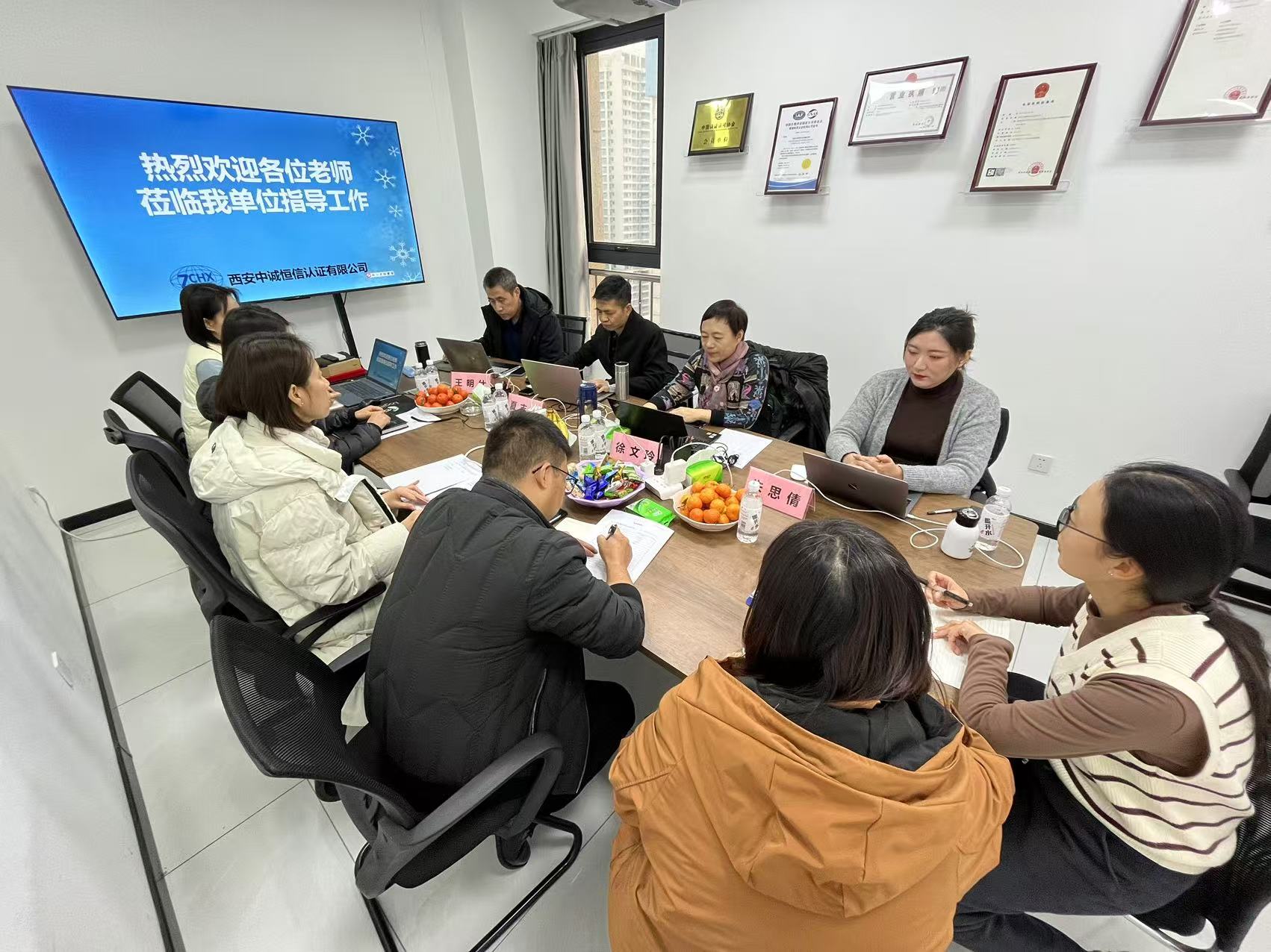 2024年12月9号至2024年12月11号,中国合格评定国家认可委员会(CNAS)一行四位老师对西安中诚恒信认证有限公司进行了为期3天办公室监督评审。